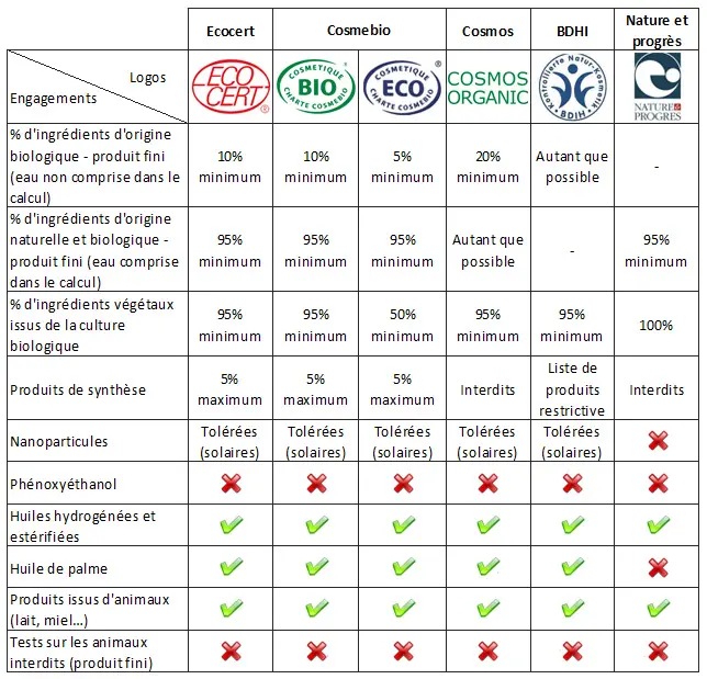 Au travers du tableau ci-dessus qui représente les agréments dans les produits cosmétiques, nous sommes en mesure de constater que la certification biologique en France veut tout et ne rien dire. En effet, certains labels sont en mesure de délivrer la certification alors que seulement 10% de la composition du produit est réellement issue d’une agriculture biologique. Nul besoin de vous dire qu’Ecocert, donc le label le moins rigoureux, est le plus répandu sur le marché.